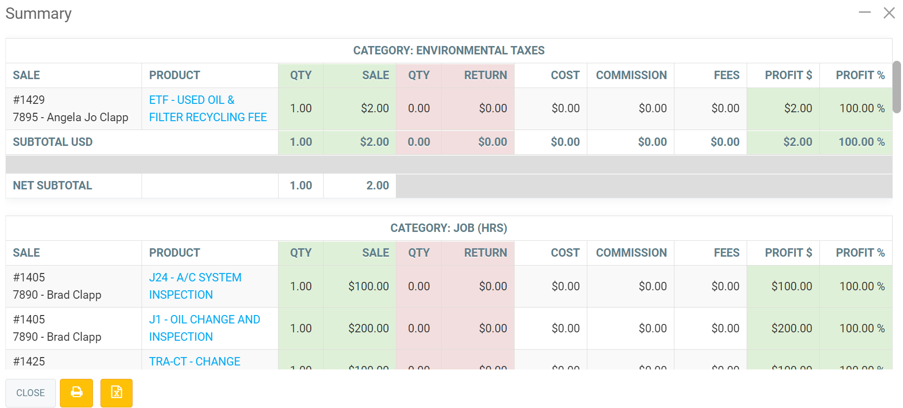 You can print and convert the report to PDF by clicking on one of the yellow buttons at bottom left, next to the Close button.