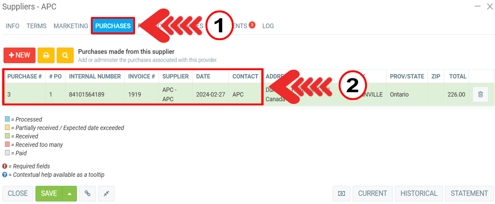 Then click on the Purchases tab and select the purchase you wish to duplicate.
