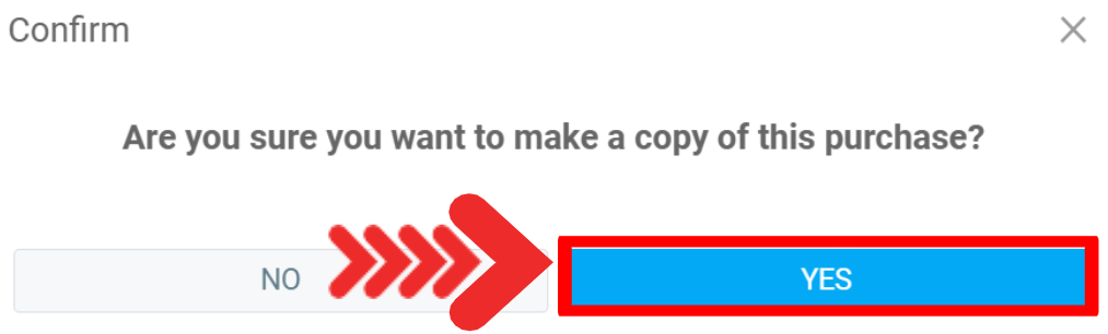 To duplicate it, choose Yes in the confirmation box with the following message: “Are you sure you want to make a copy of this purchase?”.