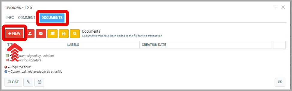 Once the information has been added, click on Add to save the invoice. A line with the information will appear just below the Add button.