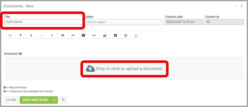 Alternatively, click on Drop or click to upload a document and browse to select the file from your computer.