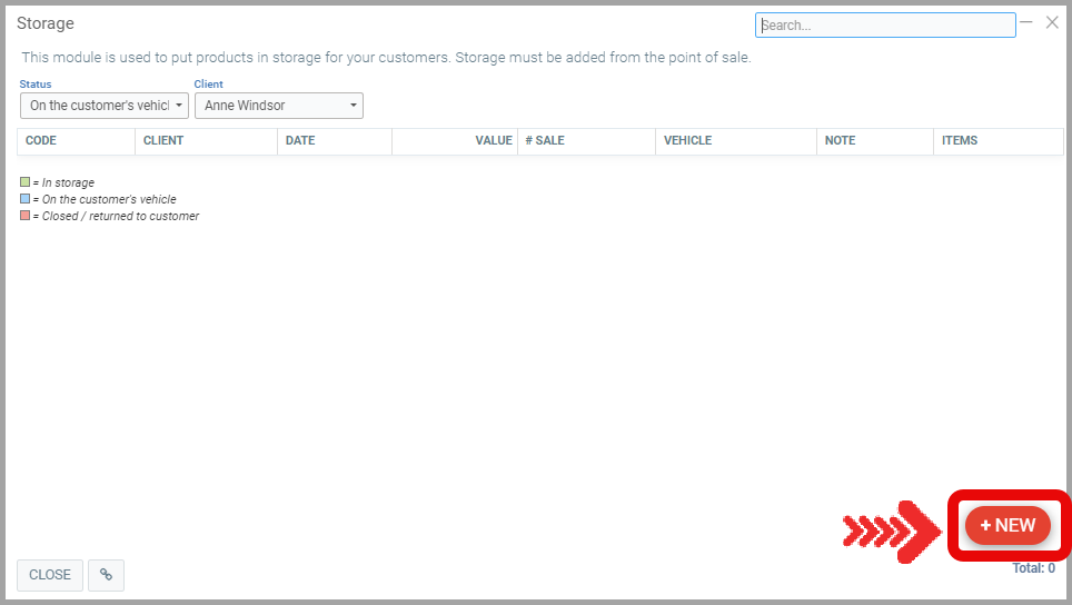 Click on +New to enter the items to be stored. You can then fill out the form.
