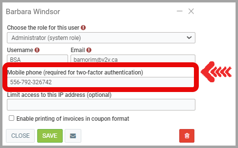 To enforce the use of two-factor authentication for your users, an administrator must add the mobile phone number for each user.