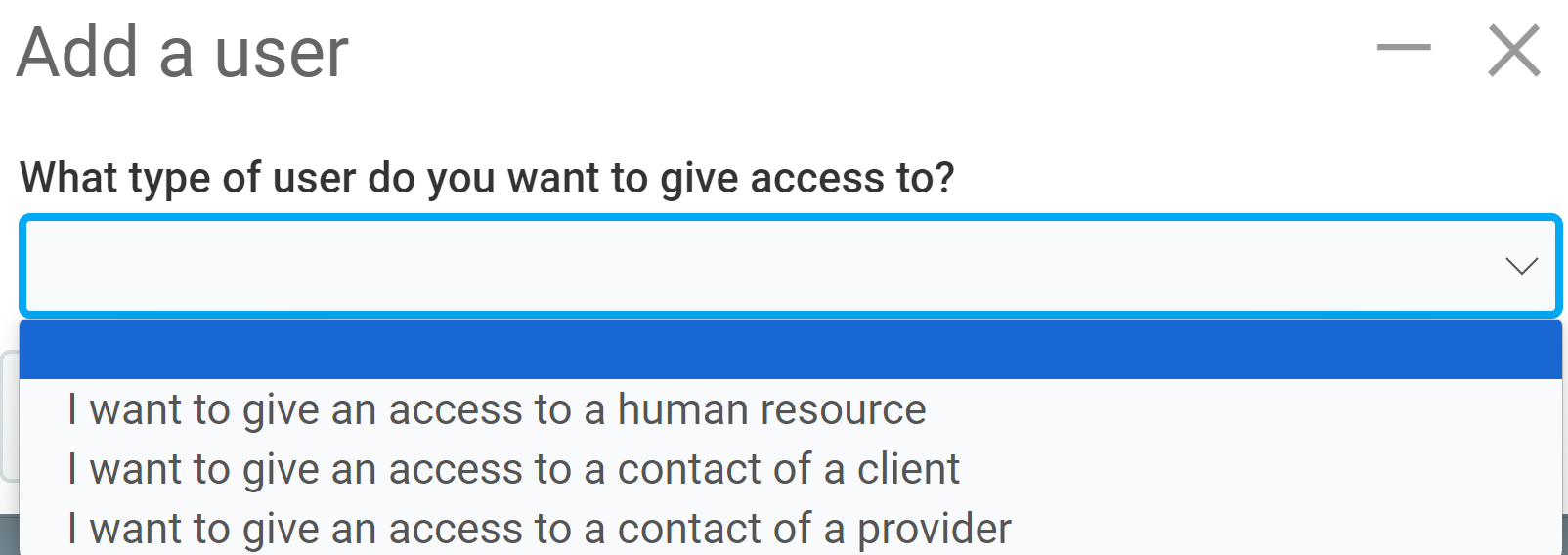 4. Select the type of user to whom you want to grant access.