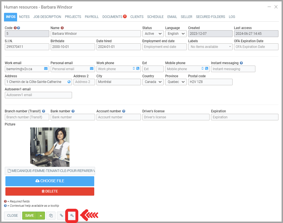 - Under the Info tab of the resource's record, click on the key icon.