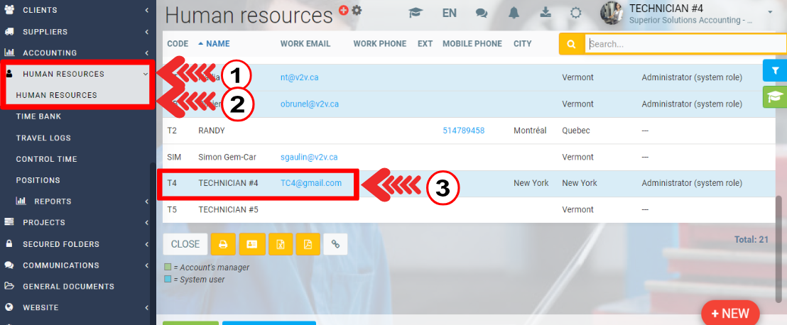 To grant a user access to one or more branches, click on Human Resources > Human Resources.