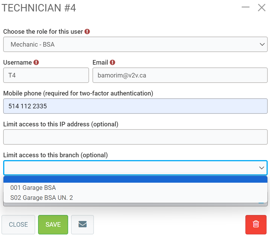 If you leave the “Limit access to this branch (optional)” field blank, the user will have access to all your company's existing branches. If applicable.