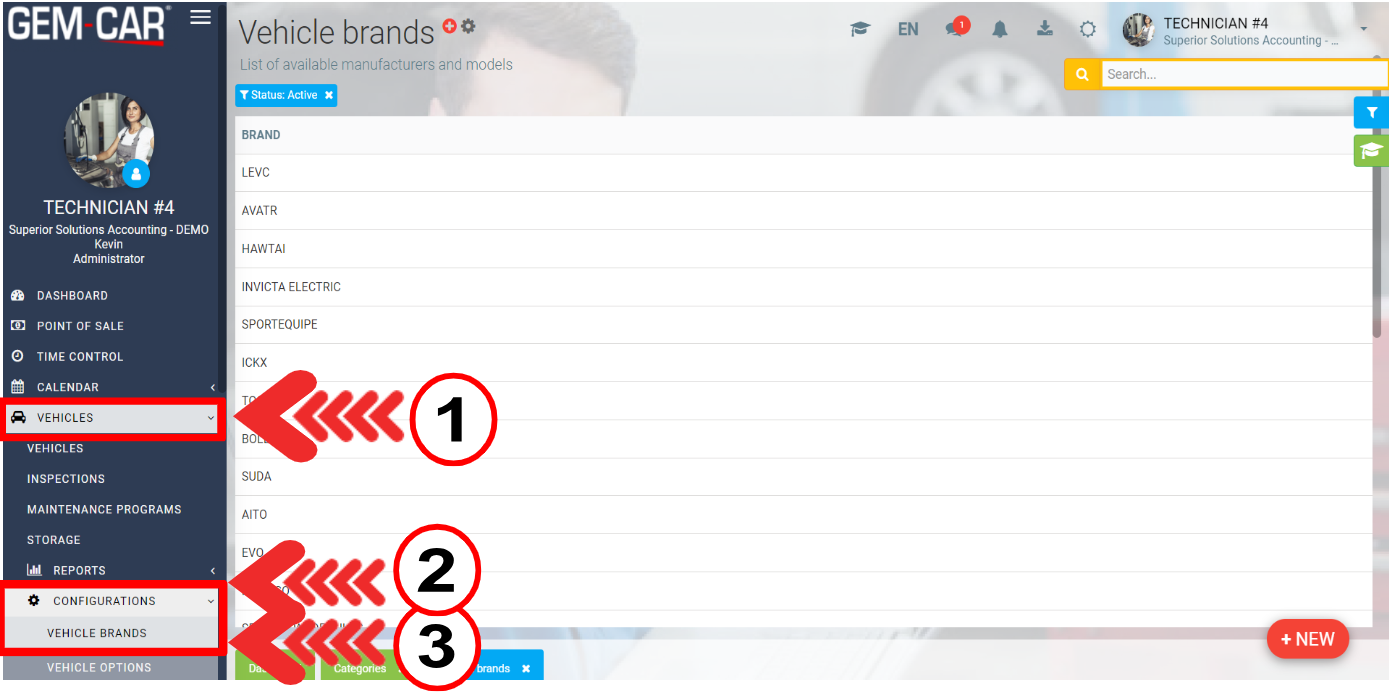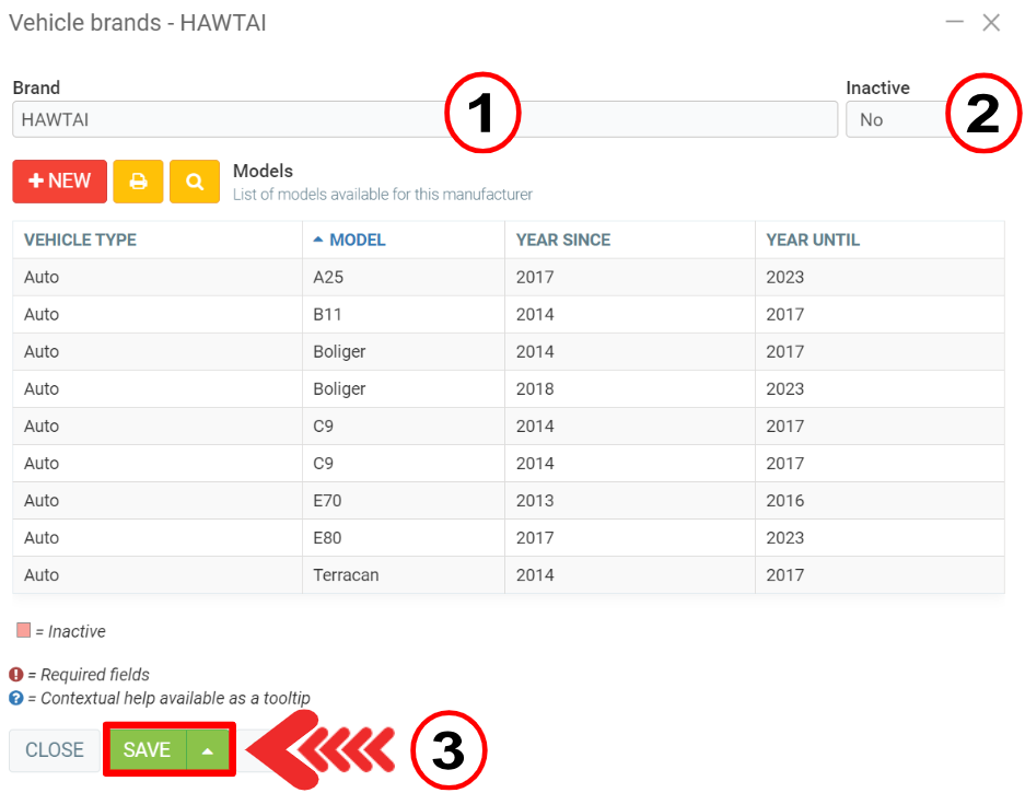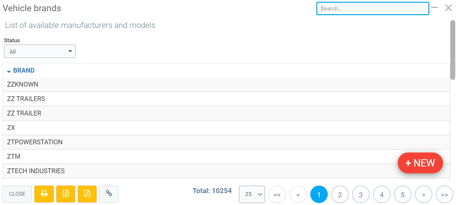 In the next window there will be a list of vehicle brands. To add a new one, click on +New.