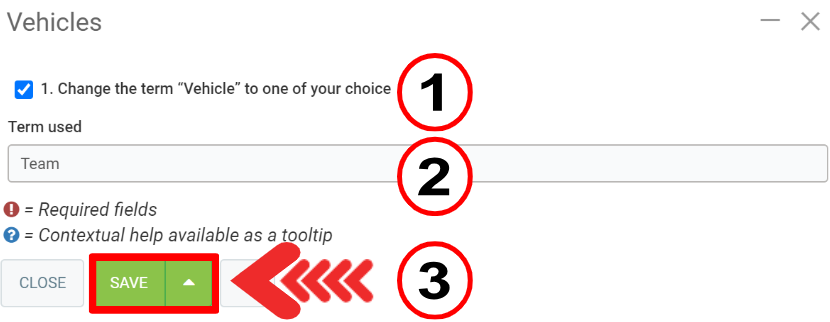 In the next window, check the box “Change the term ‘Vehicle’ to one of your choice”.
