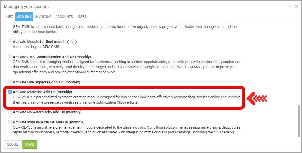 Warning! To register for the Website Module, you must be an administrator (system role). See Modifying Users Role and Permissions for more information.