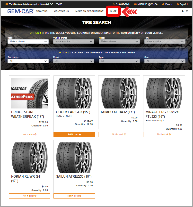 - Choose the Product categories to display in the online store. The store can be used ONLY for selling tires.