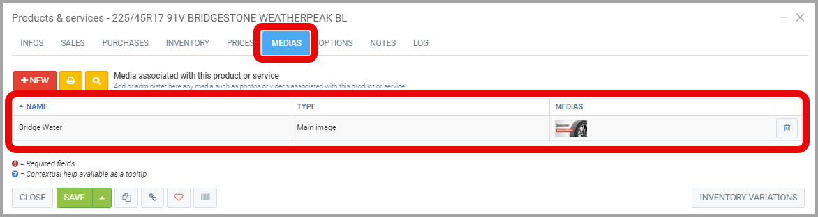 - Click on Save and close and the image will be added to the list of media associated with the product.