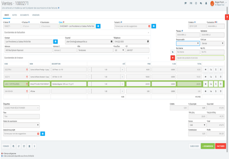 Dans le but d'illustrer cette démarche, nous utiliserons la vente numéro 1000271, qui compte 4 articles. La voici.