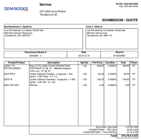 Note : Si vous avez assigné un ordre d'apparition sur soumission etfacture pour un produit ou service en particulier, GEM-CAR respectera toujours cet ordre ultérieurement.