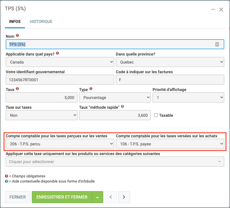 Spécifier vos numéros de taxes (Vos identifiants gouvernementaux)