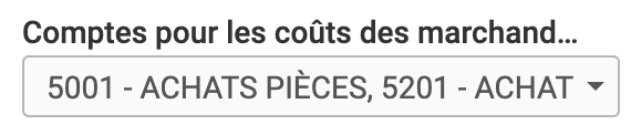 Pour complétez le coût des marchandises vendues, sélectionnez des codes dans les 5000 qui correspondent à ce que vous achetez. Des pièces, des pneus et autres éléments par exemple.