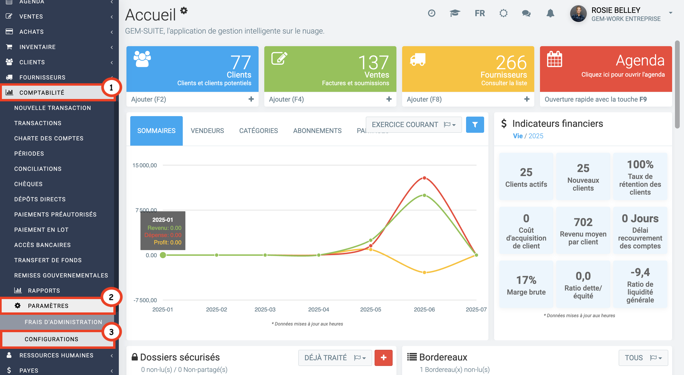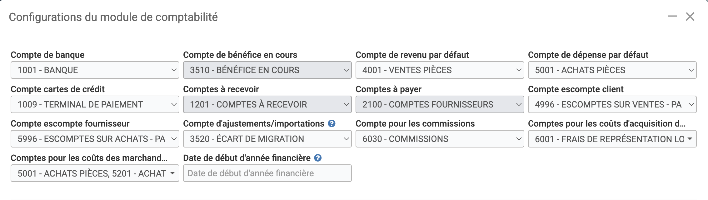 Allez dans le menu Comptabilité > Paramètres > Configurations.