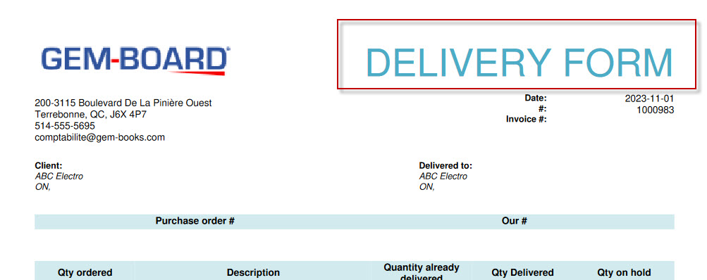 Prenons l'exemple du Bon de Livraison. Sur ce document, il est marqué comme titre "BON DE LIVRAISON", ou en Anglais "DELIVERY FORM".