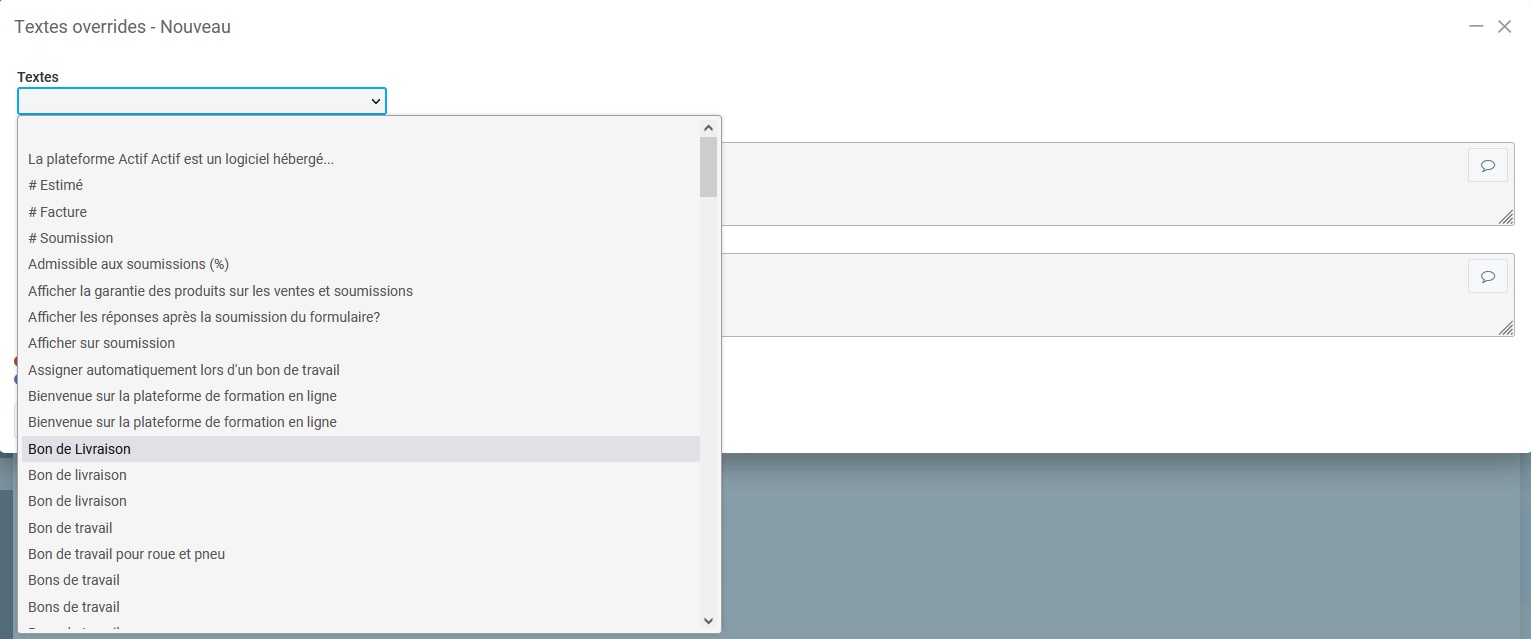 Dans le champ "Textes", nous allons chercher le texte système a modifier. Dans notre cas : "Bon de Livraison".