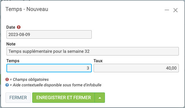 Note : Si vous utilisez le module Projet, au moment de "Payer les employés" vous pourrez rediriger des heures vers la banque d'heures de l'employé.