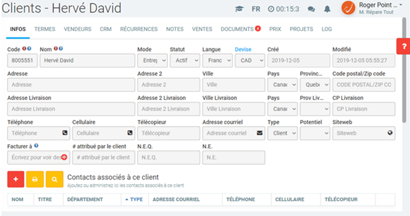 Prenons l'exemple du client Hervé David, que nous avons créé, il y a déjà un moment.