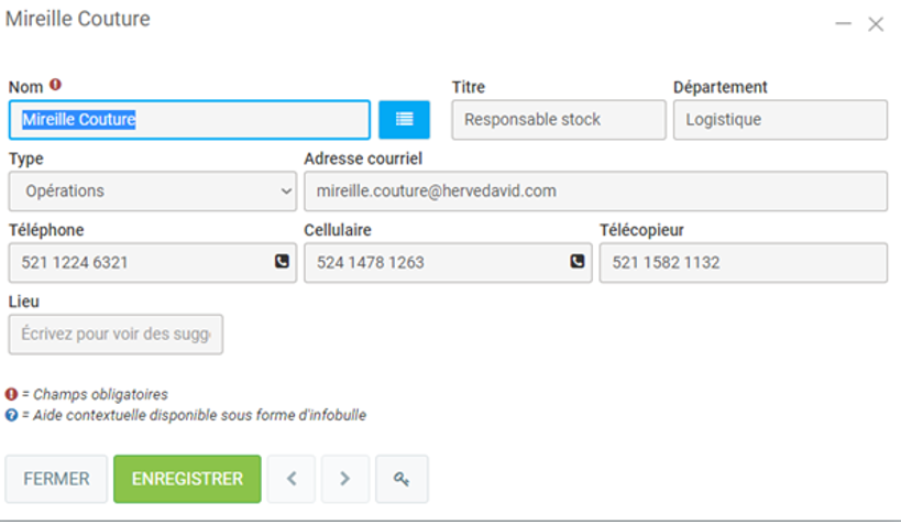 Vous pouvez maintenant fermer la fiche du contact Mireille Couture.