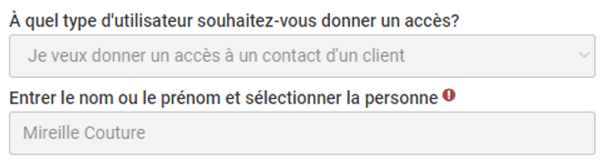 Ce champ est également rempli, et n'offre pas d'autres choix, car le contact reste toujours un client.