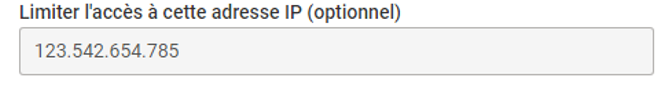 Le champ qui suit vous permet de limiter l'accès du contact à une adresse IP spécifique. Ceci est optionnel, mais il vaut toujours mieux le remplir.