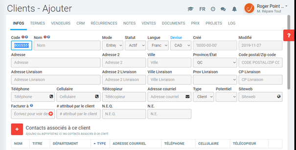 Comment créer un client? Partie I - Onglet Info