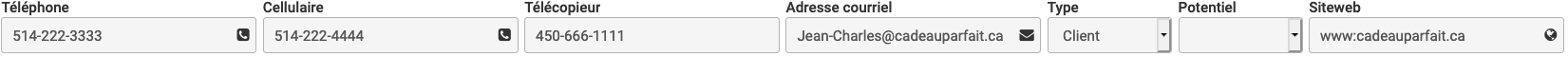Il en est de même pour l’adresse courriel ainsi que celle du site web de votre Client. Quand vous cliquez sur l'icône