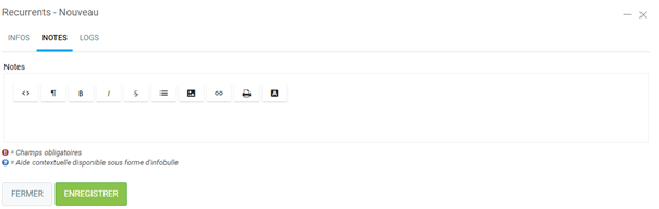 L'onget NOTES de Récurrents - Nouveau est destiné à vos remarques, commentaires conernant les récurrences du Client. C'est toujours dans l'objectif de mieux le connaître à travers ses habitudes. Si vous voulez laisser d'autres remarques qui pourront être utiles, non seulement à vous, mais également à vos collaborateurs, c'est l'endroit idéal.