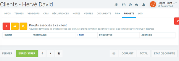 L'avant dernier onglet qui est PROJETS vous affiche les projets associés au dossier du Client en question. Cela peut être la promotion de fin d'année concernant les produits qui l'intéressent.