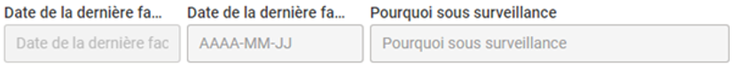 Les champs qui suivent concernent l’historique de facturation et de solvabilité du client. Si vous avez déjà ces informations, vous pouvez les insérer. Il y a d’abord la "Date de la dernière facture". S’il y a une facture non payée, vous pouvez la mentionner dans le champ du milieu, "Date de la dernière facture impayée". Dans le cas d’un client non solvable ou bien dont la capacité à payer vous inquiète, le troisième champ "Pourquoi sous surveillance" est fait pour mentionner s’il est nécessaire de surveiller le client.