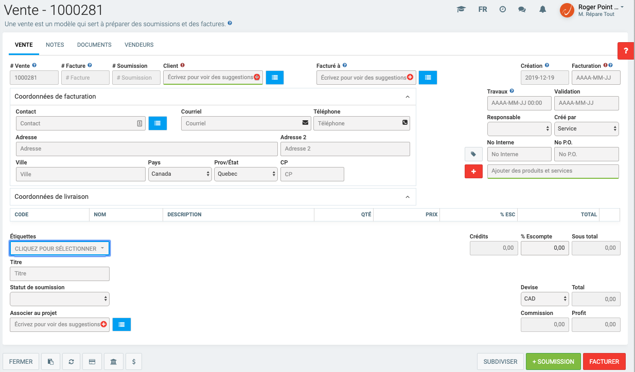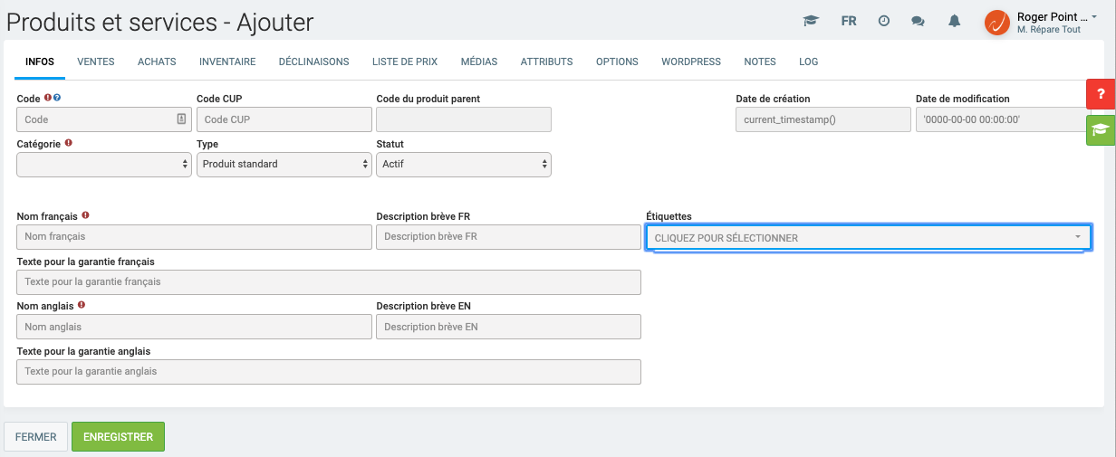 Les étiquettes créées ici seront applicables dans la fiche Produits et services de l'Inventaire.