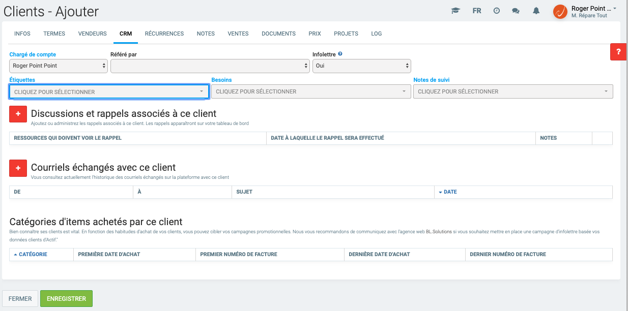 Les étiquettes créées ici seront applicables dans la fiche Clients, sous l'onglet Marketing.