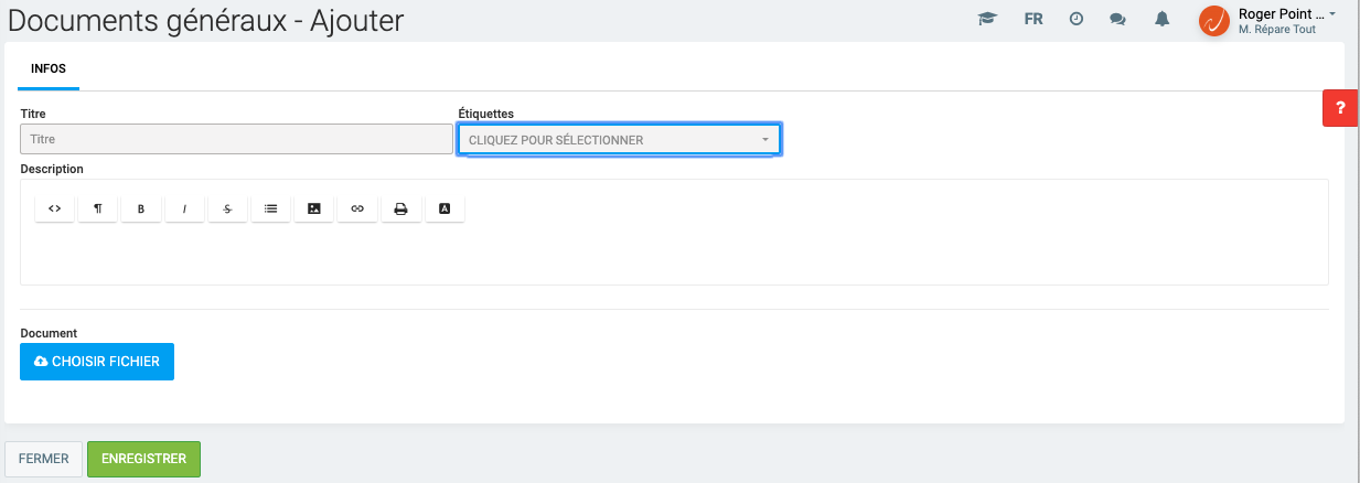 Les étiquettes créées ici seront applicables dans la fiche Documents généraux, sous l'onglet INFOS.