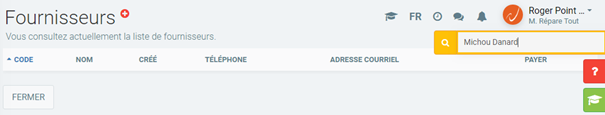 Vous pouvez écrire le nom du Fournisseur dans le champ de recherche