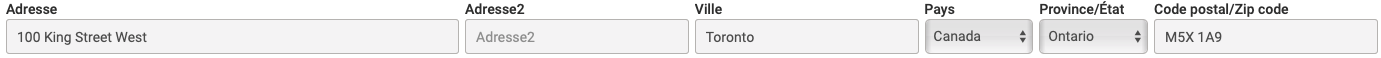 Le deuxième champ d'adresse est pour usage optionnel. Il vous permet d'inscrire des informations complémentaires au sujet de l'adresse civique de votre Fournisseur (ex. : 4e étage... Bureau 315... etc...) afin de préciser celle-ci.