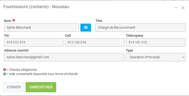 Vous aurez une fenêtre comme celle-ci, vous permettant d'insérer toutes les coordonnées concernant ce contact.