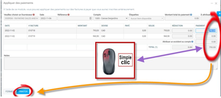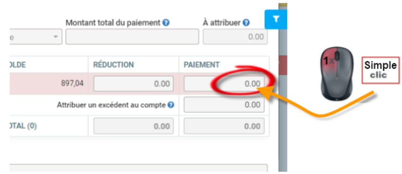 Note : Éditez les montants du champ de paiement, si vous désirez payer un montant inférieur à la totalité de la facture.