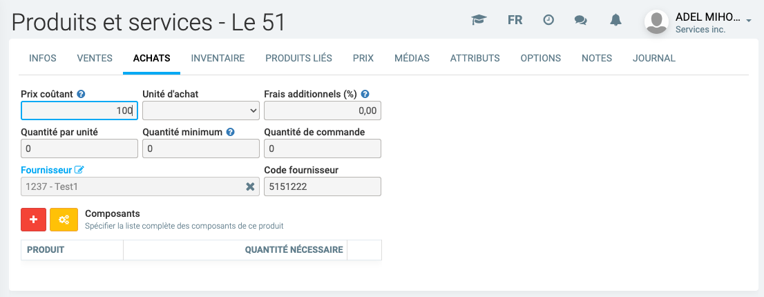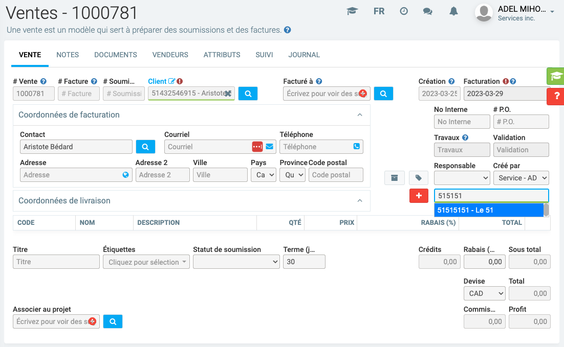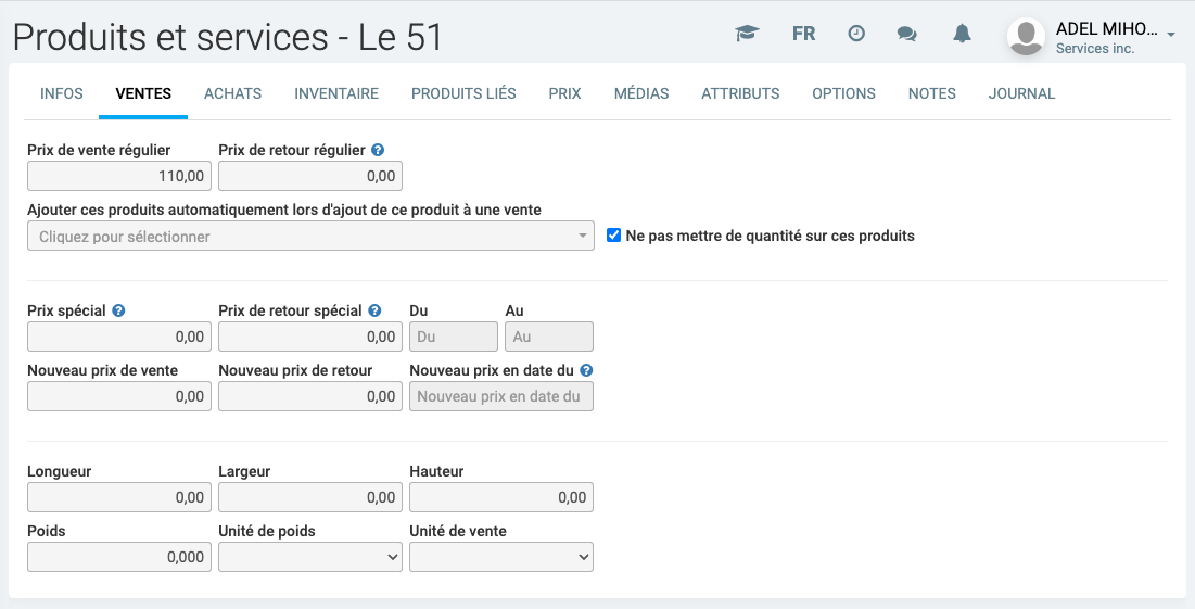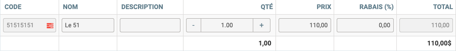 Replaçons le prix coutant à 50$ et le prix vendant à 100$ et ajoutons maintenant ce produit sur une vente.