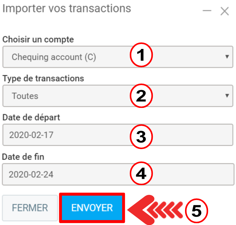 GEM-BOOKS vous demandera pour quel compte et pour quelle période de dates vous désirez importer des transactions.