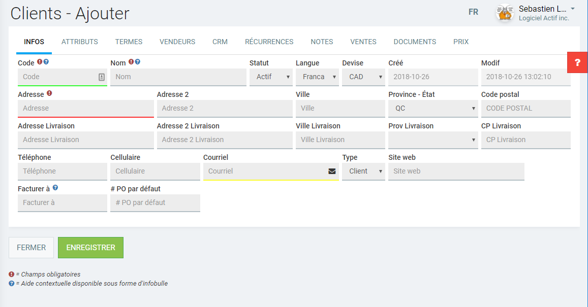, situé dans le bas à droite de la fenêtre, vous allez créer une fiche pour un nouveau client