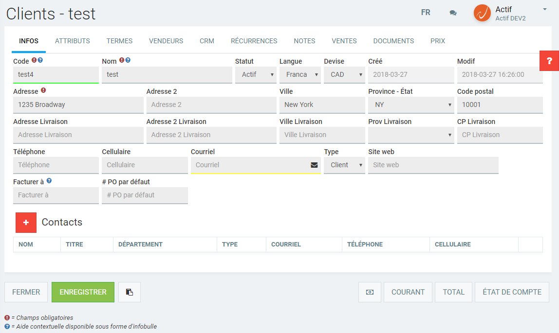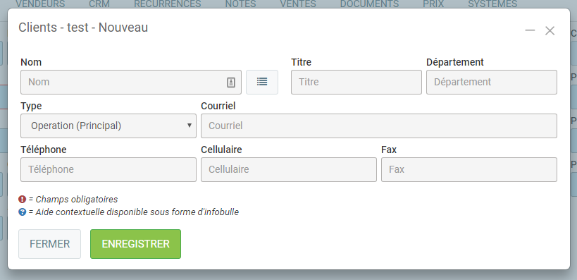 - En premier lieu, vous devez créer une fiche dans la section client et ajouter un contact