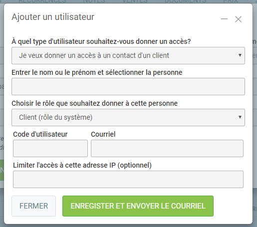 Voici les étapes pour créer un client et lui donner un accès à la plateforme (en option).