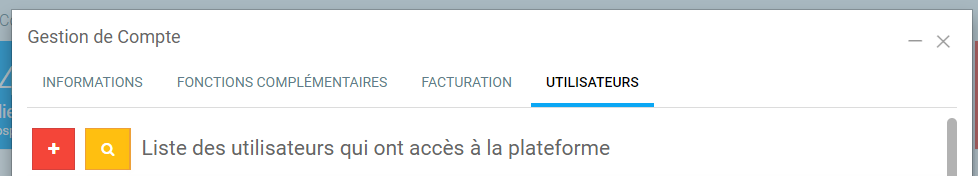 Optionnellement vous rendre dans la section gestion de compte (ou gestion des utilisateurs selon votre rôle) du menu en haut à droite, afin de gérer l'ensemble des accès que vous avez créé au fil du temps.