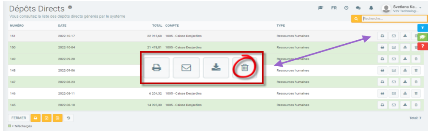 Si vous voulez modifier ou supprimer une paie et que le fichier de dépôt direct a été généré, vous devez le supprimer en premier.