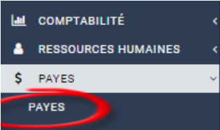 Allez dans le menu “paies”, Cliquez sur le sous-menu “paies”.