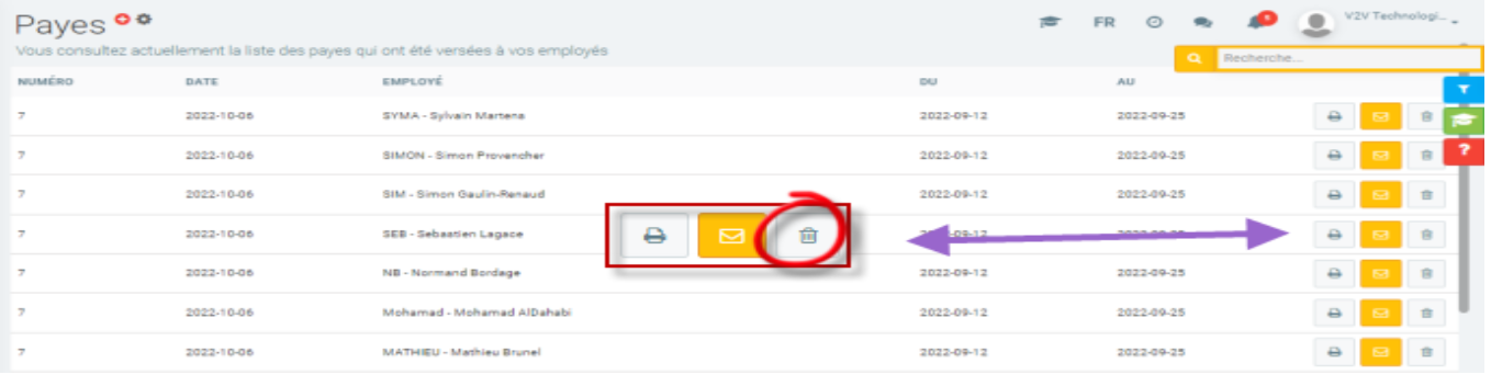 Dans la grille, cliquez sur l’icône de la poubelle pour supprimer le fichier de paie.