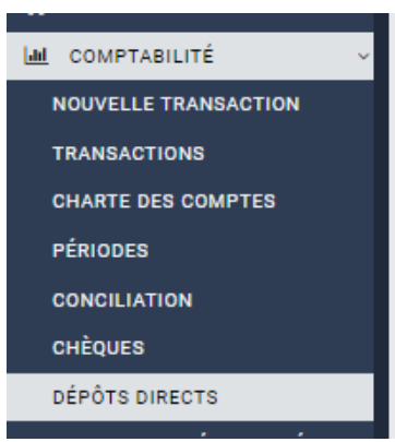 Allez dans le menu “Comptabilité”, Cliquez sur le sous-menu “Dépôts directs”.